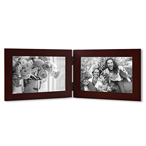 Adeco PF0415 Walnut-Color Wood Hinged Table Top Picture Frame, 2 Openings, 4x6" ,Walnut