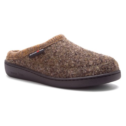 Haflinger Men's ATC Stitch Hardsole Slipper Khaki Speckle 41 European