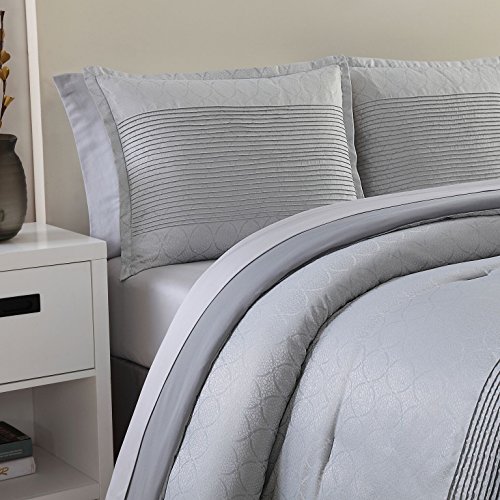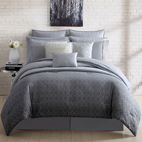 Internationally renowned interior designer Nikki Chu has teamed with Ellison to develop a signature line of bedding and home decor. This is an aspirational and attainable assortment of elevated, livable home decor that asserts style and comfort while offering amazing value. Her design philosophy is to create spaces that are personalized, comfortable and stylish with touches of glamour. All with a sense of timeless style. Nikki Chu offers sophisticated designs that represent the best of today's trends in easy, livable items that effortlessly layer into any home. An affordable luxury in any decorating makeover. A designer to the stars, she has utilized her genius with some of the nation's most recognizable brands. Through her partnership with Ellison she offers a complete line of bedding sets and coordinating sheets, window treatments and decorative pillows. The Lyon comforter set is a study in silver accented by jewelry like adjacent links. The top face of the comforter is light silver and slightly past midway, the light silver is met with shaded pleats, continuing on in dark silver to the foot of the comforter. Very elegant, very unique. Coordinating window treatments and pillows sold separately. This Queen or king sized set features swirling droplets of silver/gray on a deep gray ground.Feature