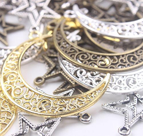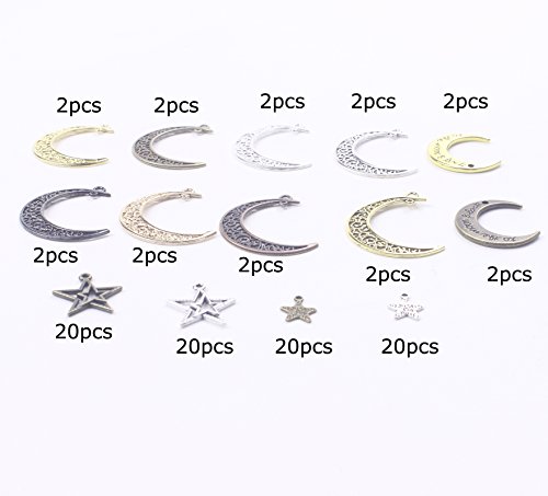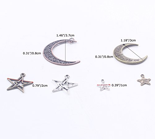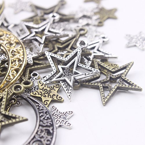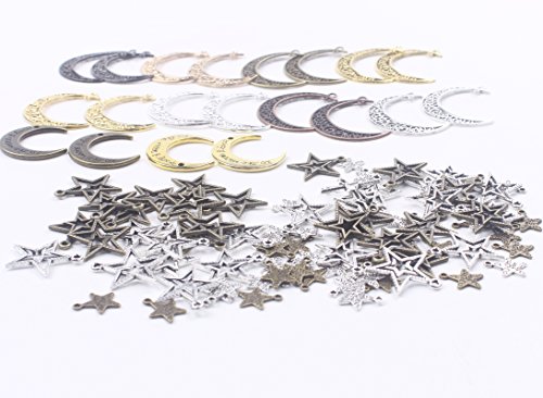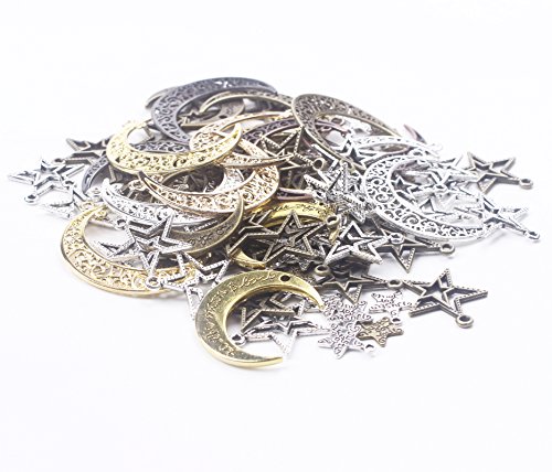 BIHRTC Pack of 100 Metal Moon Star Charms Pendant for DIY Craft Jewelry Making Accessory