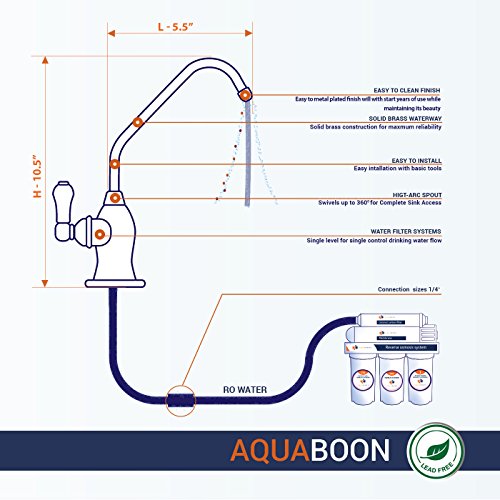 Aquaboon Water Filter Purifier Faucet for Any RO Unit or Water Filtration System (Classic Style, Brushed Nickel)