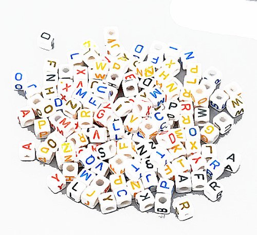 450 Mixed Color on white Acrylic Alphabet /Letter "A-z" Cube Spacer Beads 6mm Approx 1/4 Inch Sold Per Pack of 450