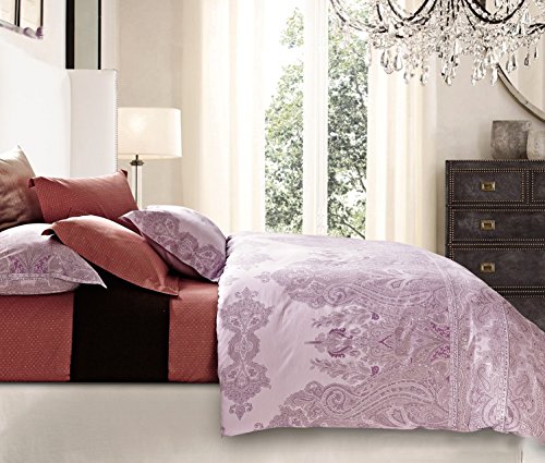 Eikei Home Lavender Lilac Bohemian Paisley Duvet Quilt Cover Light Blue Purple Boho Chic 100% Cotton