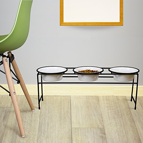 Studio : Platinum Pets Publisher : Platinum Pets Binding : Misc. Product Description A healthy pet is a happy pet! That’s why Platinum Pets incorporated veterinary recommendations into the design of our Elevate Pet Diners. Raising your pet's food eases strain to their back, neck, spine, hips, and aides the digestive system. All triple diners include three bowls featuring our Rattle-Free Rim. The Rattle-Free Rim is made of silicone and eliminates the clanging of metal on metal, allowing your pet to dine in tranquility. 0