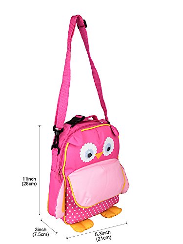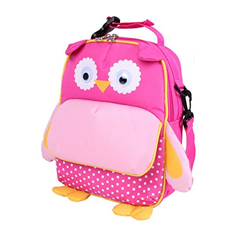 Yodo 3-Way Playful Kids Girls' Insulated Lunch Boxes Carry Bag and Preshool Toddler Backpack, Pink Owl