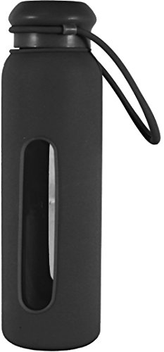 Gourmet Home Products Glass Water Bottle with Full Silicone Sleeve, 16 oz, Black