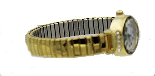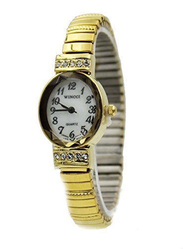 Ladies Gold Tone Dainty Stretch Band Oval Case Watch with Crystal Accent