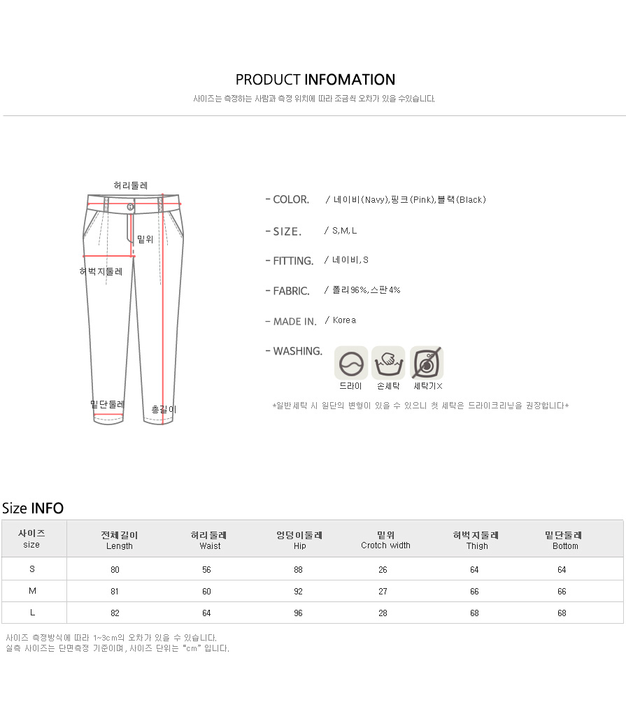 컬러는 네이비,핑크,블랙 3컬러에 S,M,L 사이즈 준비했어요