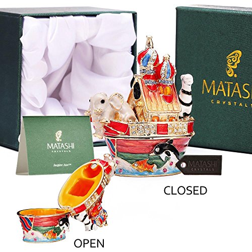 - Classic Noah’s Ark Trinket – A beautiful jewelry box with bright, colorful features, this hand-painted boat is a traditional design with small, ornamental crystals.