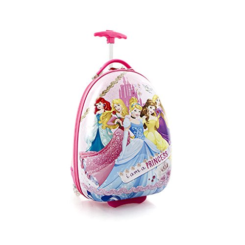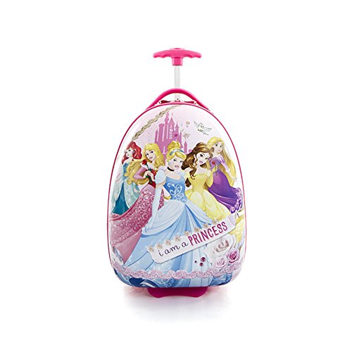 Designed Especially for Kids. The Disney Princess Luggage Case was created by Heys with the unique characteristics of children in mind, as it incorporates several design features that benefit children. These beautiful cases have Disney characters specially printed onto their hardshell surfaces. There are a variety of unique character prints in this collection; these prints include popular Disney characters such as Frozen, Princesses, Cars, Fairies, Minnie and Mickey Mouse, Doc. Mcstuffins, Sofia and many more. In creating a 'High-end' series for Disney, our designers incorporated several children-specific features. One of these is the internal 'reversed-curved' handle system that curves the handle inwards & upwards closer to the child, making it much more comfortable for the child - at a low height - to hold and navigate the case. The Patent Protected design of this case also allows the wheels to 'protrude' out. This protrusion keeps the case elevated, so that even when being rolled at a very low height off the floor, the wheels will be the only point of contact and the case will continue to roll with ease. The cases weigh in at a mere 3.7 lbs, and feature our inline skate wheels that make their rolling even smoother, so any child can easily wheel these fun cases around. They also have a zipper closure system, that when opened reveals a beautifully lined interior as well as a zippered divider for internal organization. Material: ABS / Polycarbonate composite Sizes:18 x 11 x 9 Weight: 1.73 kg (3.8 lbs) Frame: Frameless Wheels:Specially designed Protruding Inline wheels with Metal Bearings Handle:Internal Reversed-Curve Handle System designed especially for ChildrenFeature