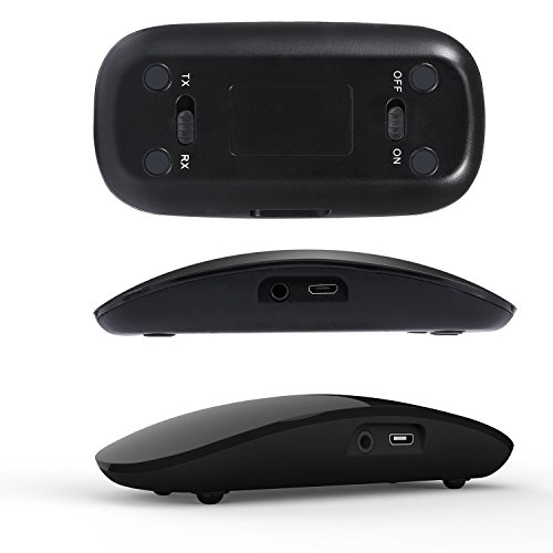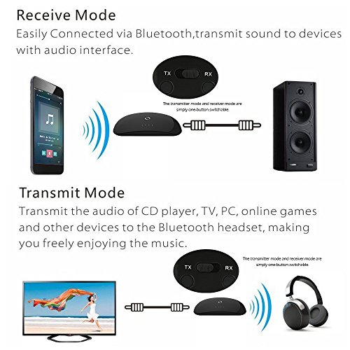 Transmitter Mode: Connect the audio devices(such as MP3, MP4, TV and PC, etc.)via the 3.5mm audio cable or RCA. Easy pairing with Bluetooth headphones, speakers and other Bluetooth devices. Support two Bluetooth headphones or speakers simultaneously