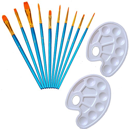 Art Artist Acrylic Paint Brush Set Oil Watercolor Rock Face Nail Fine Detail Painting Brush 10 Pieces with 2 Palettes, Colorsky