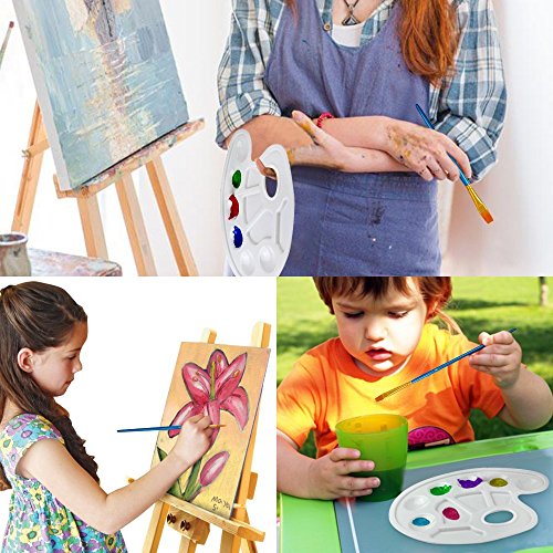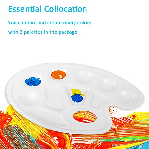 - 2 PAINT PALETTES : It divides into 6 round wells, 4 rectangular wells and 1 thumb hole, so you can use more than one color and fit comfortably in your hand. Each color has its own area and you also have areas to mix colors. The pallet is durable and very easy to clean after use.