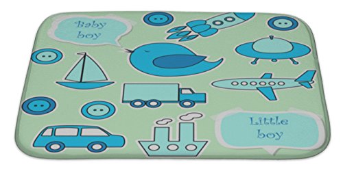 Gear New Set of Scrapbook Elements for Baby Boy Bath Rug Mat No Slip Microfiber Memory Foam