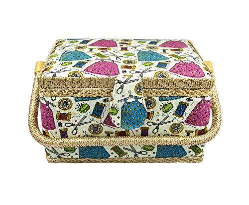 MEDIUM SIZE SEWING BASKET W/ HANDY INSERT AND SEWING NOTIONS
