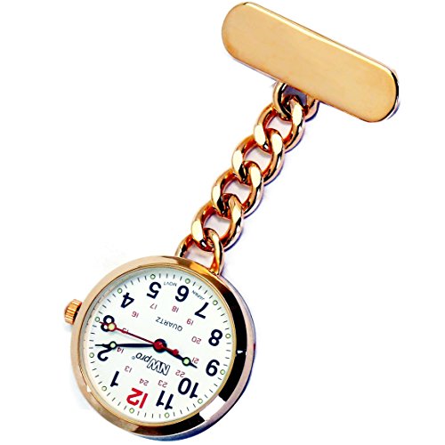 NW-Pro Lapel Nurse Watch - Large White Dial - Water Resistant - Chained - Rose Gold Tone