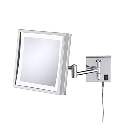 Kimball & Young 91273 Single-Sided LED Square Wall Mirror with 6-Feet Plug-in Cord, qBrushed Nickel