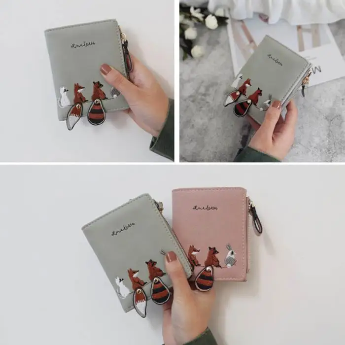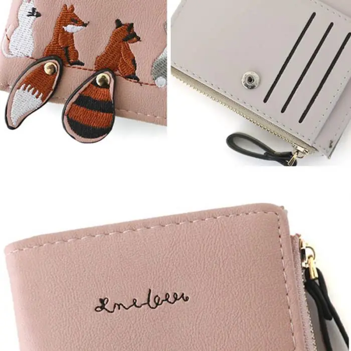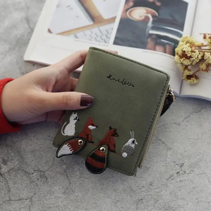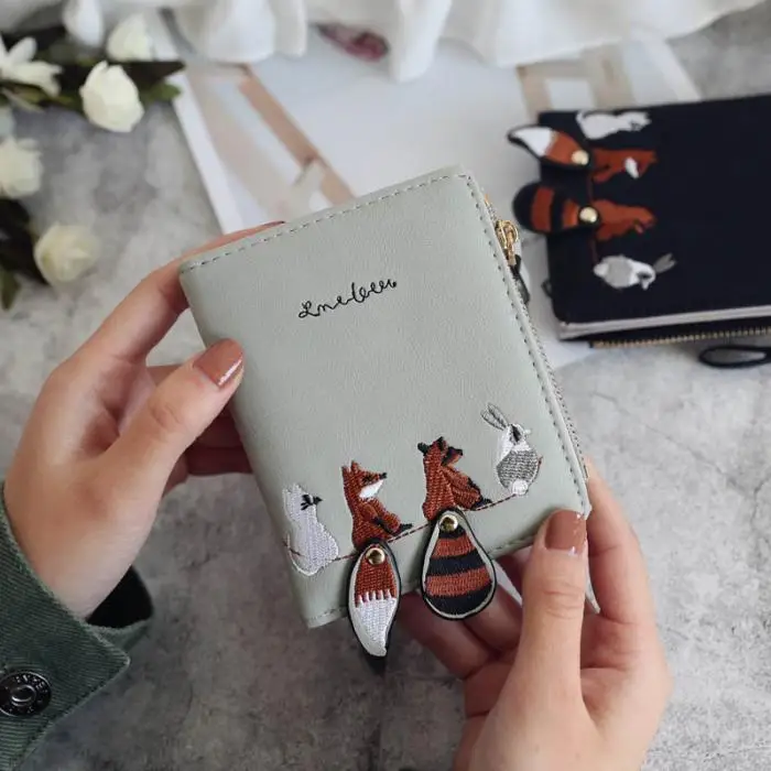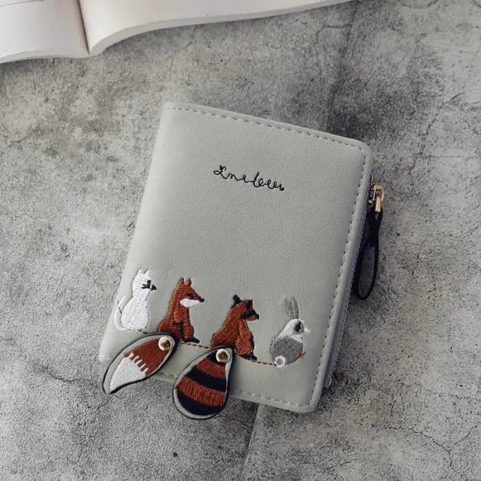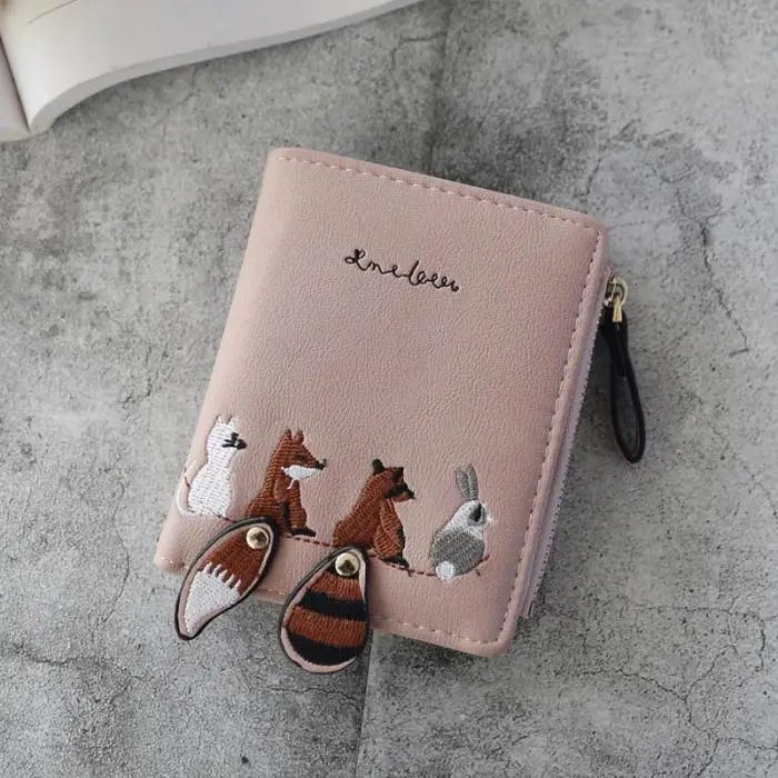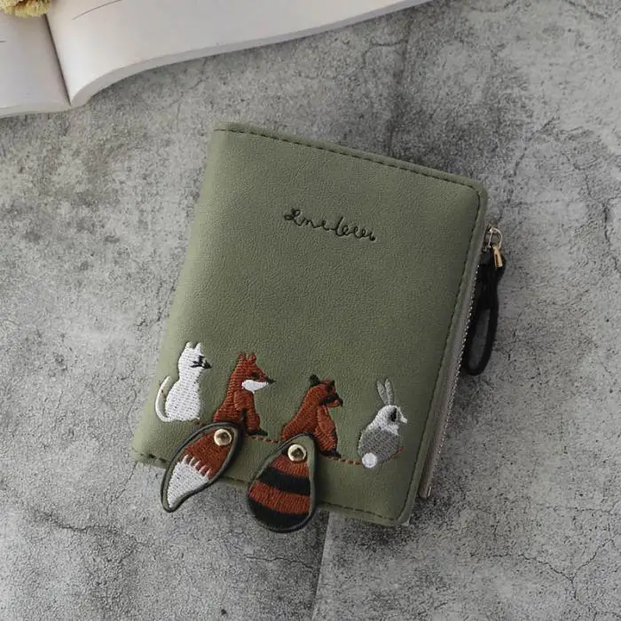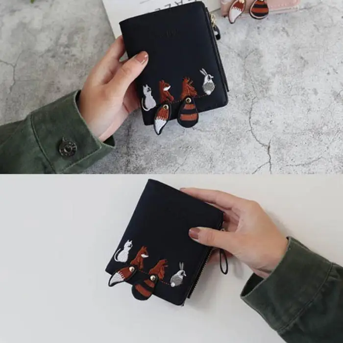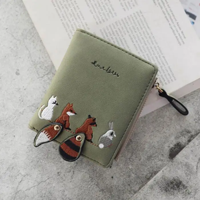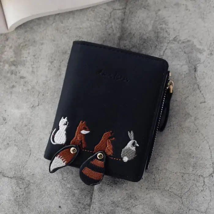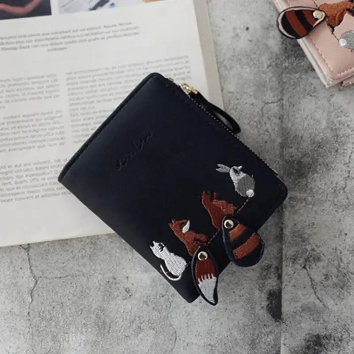 Individuality PU Leather Hasp Zipper Mini Coin Card Holder Women Cute Cartoon Embroidery Wallet Short Purse Popular