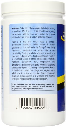 Purely-B is the ultimate non-GMO, natural vitamin/mineral power food. Unlike other powders, the nutrients in Purely-B are 100% natural-no synthetics are added. It is an excellent food source of amino acids, niacin, thiamine, riboflavin, pyridoxine, calcium, magnesium, iron, and phosphorus. It also contains pure essential fatty acids and easy-to-digest, nourishing carbohydrates. Purely-B is a good source of soluble fiber. When added to a shake or smoothie, it makes an ideal meal replacement.Feature