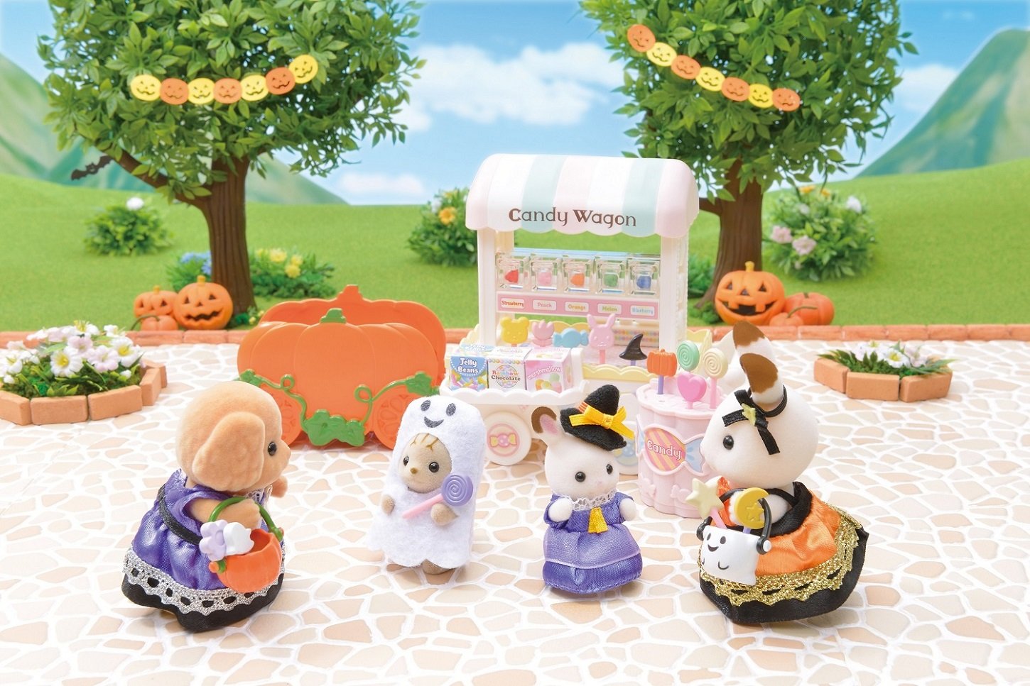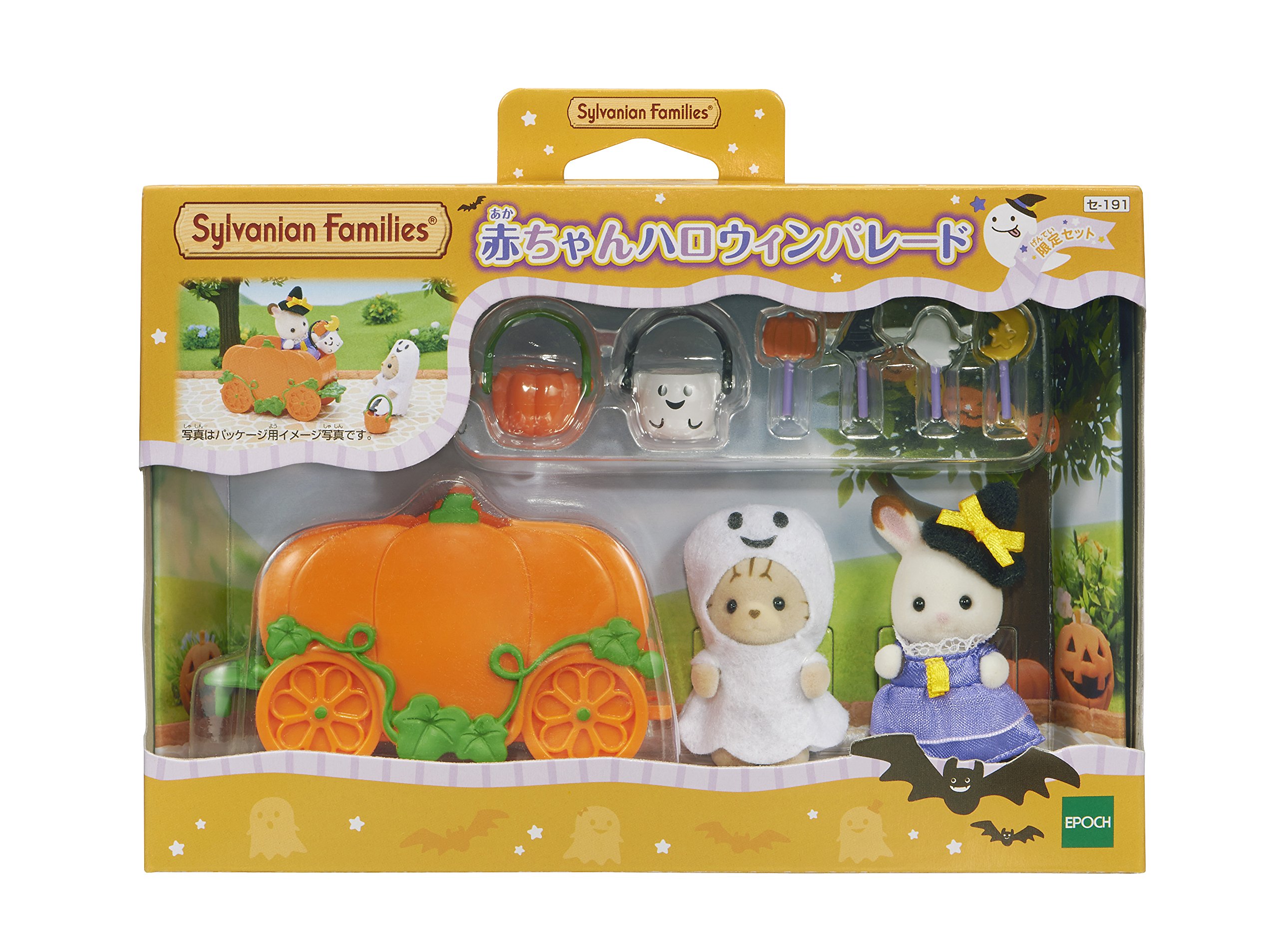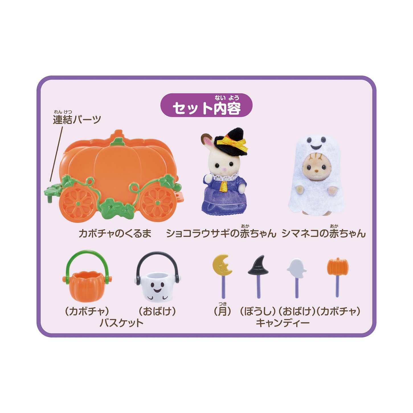 Chocolate Rabbit baby, Shimaneko baby, pumpkin car, basket (pumpkin), basket (ghost), candy × 4
