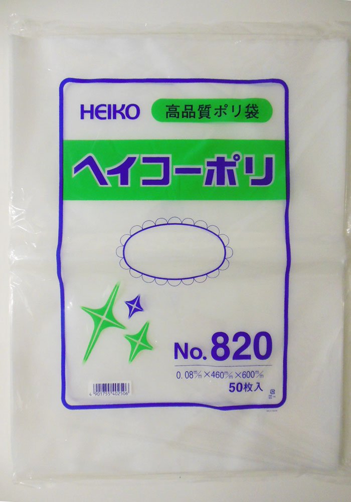 HEIKO Heiko polyethylene bag No.820 (50 pieces) 006 629 000 (no string) Thickness 0.08mm (japan import)