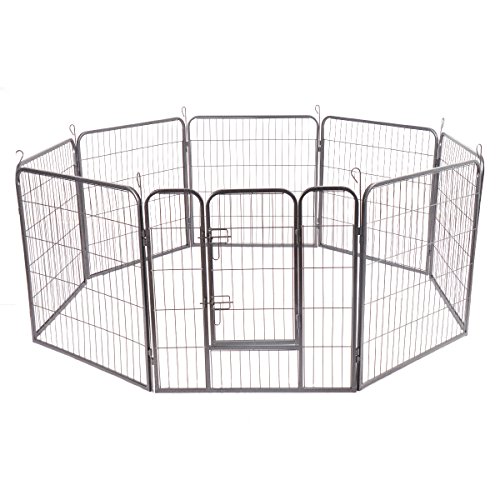-. Feature : E-Coat finish, all-steel wire Expandable, modular design for multiple configurations and shapes / Round edges design provide protection Easy to set up and fold up / Suitable for all small to large sized pets (cats, dogs, bunnies, guinea pigs) Made of solid iron / 8-panels can be set up in a rectangle or octagon / Convenient door to enter/exit easily Perfect for indoor and outdoor use