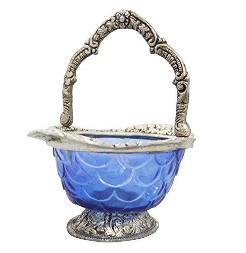 Zap Impex Serving Dish White Metal Carving Glass Bowl Blue color Bowl, Dry fruit Bowl