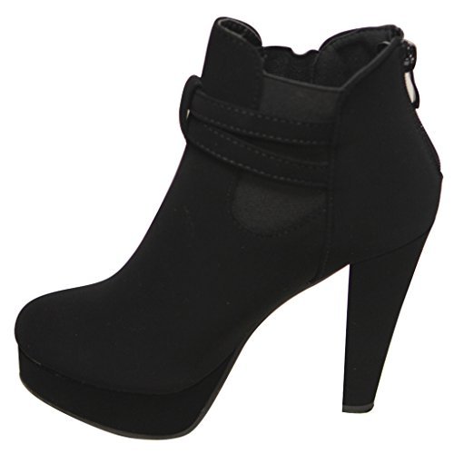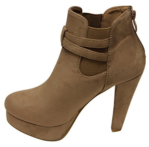 Top Moda Tingo-36 women's platform elastic side rear zip buckle high heel ankle booties
