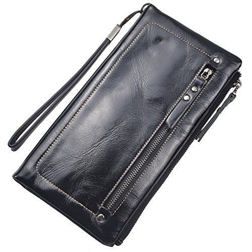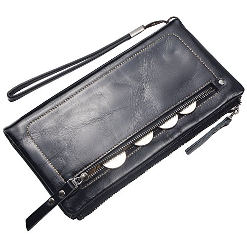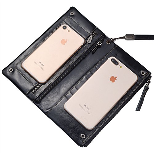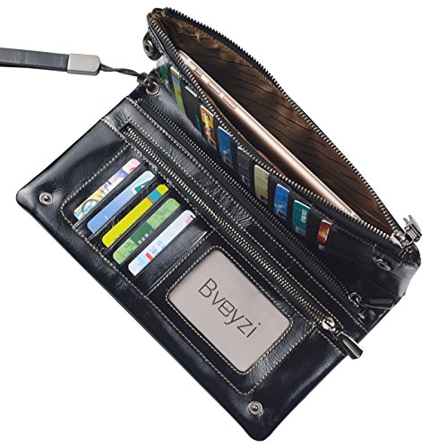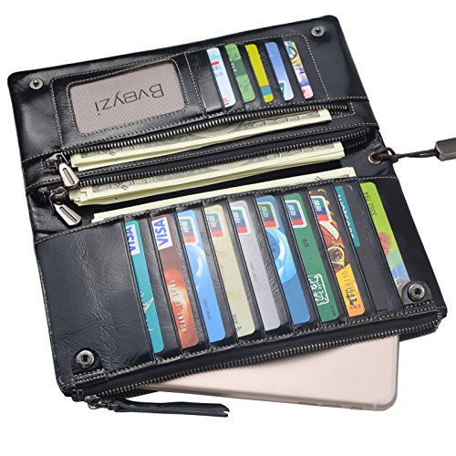 Bveyzi Women's Large Capacity Soft Real Leather Wristlet Wallet Checkbook Passport Holder