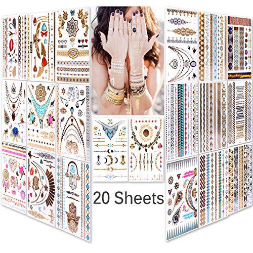 Description Temporary Tattoos with mix hot style ,20 sheets for per package ,multicolor temporary tattoos in a variety of sizes and shapes including:Arrows ,Chevrons,Birds, Necklaces,Bracelets,Hawaiian & tribal designs and so on