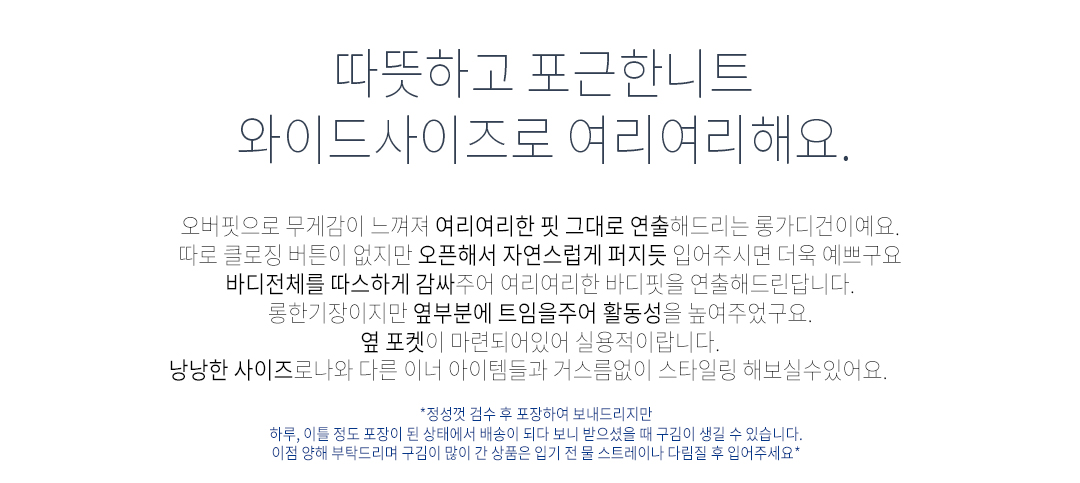 .같은 사이즈라도 체형에 따라 핏감이 조금씩 다를 수 있습니다.