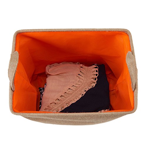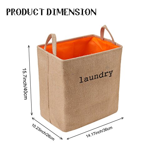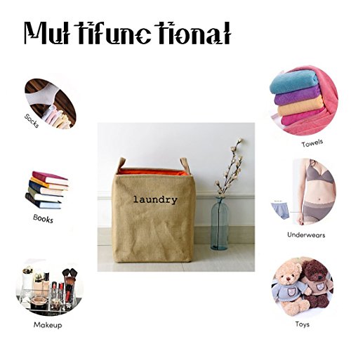 - Material: Cotton & Jute fabric + EVA inner + Linen lining, 3 layers keep more stereoscopic and provide more convenience, durable and long service life. Two handles at the mouth makes you convenient to lift when wash soiled clothes or organizing your books and house.