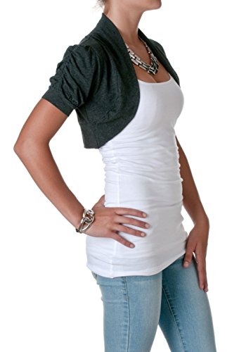 -. Binding : Apparel -. Brand : 2LUV -. Department : womens -. Feature : This cute and unique short sleeve bolero cardigan features an open front design, cropped silhouette, and ruched short sleeves. / Juniors Sizing -. ProductGroup : Apparel -. ProductTypeName : SWEATER -. Title : 2LUV Women's Short Sleeve Cropped Bolero Cardigan