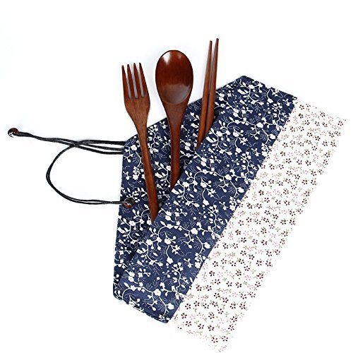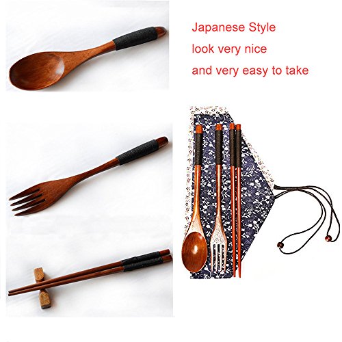 - 4 Piece Wood Cooking Set - 1 Pair Chopsticks, 1 x Spoon, 1 x Fork, and 1 x Tableware Bag. Easy to Clean - simply wash with warm soapy water and dry thoroughly, dishwasher safe