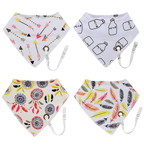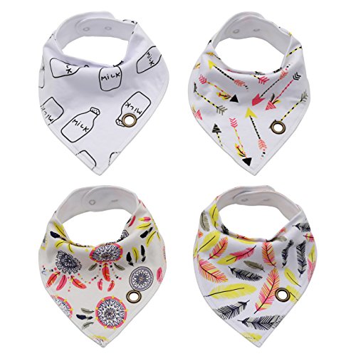 ✓STYLISH & COMFORTABLE BABY OUTFIT: Modern set of 4 trendy unisex baby drool bibs. Neutral patterns look great on both boys and girls. Fashionable bandana bibs are the perfect ways to accessorize your little’s outfits, each set come with 4 different designs.