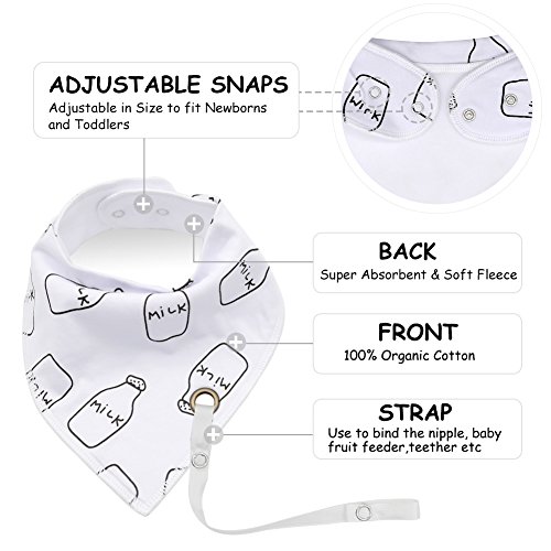 ✓SUPER ABSORBENT & HIGH QUALITY NON-ALLERGIC DROOL BIBS: Made with double layer cloth which is skin protection, hypoallergenic durable and soft. Front is 100% soft organic cotton. Back is super soft polyester fleece for absorbency. Protect and keep your drooly/teething baby dry from all dribble and spit ups. No more wet clothes!