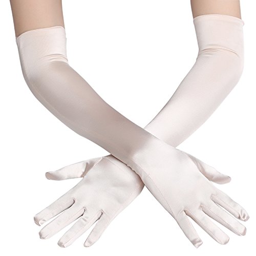 BABEYOND Damen Handschuhe Satin Classic Opera Fest Party Audrey Hepburn Handschuhe 1920er Stil Handschuhe Elastisch Erwachsene Grosse Ellenbogen bis Handgelenk Lange 52/55cm