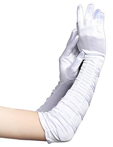 Festliche Tanzball Party Handschuhe: misst ca. 20,5 oder 21,6 Zoll von der Fingerspitze bis zum Ende des Handschuhs. Eine Grosse passt am meisten wegen des elastischen Satin mit guter Qualitat.