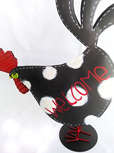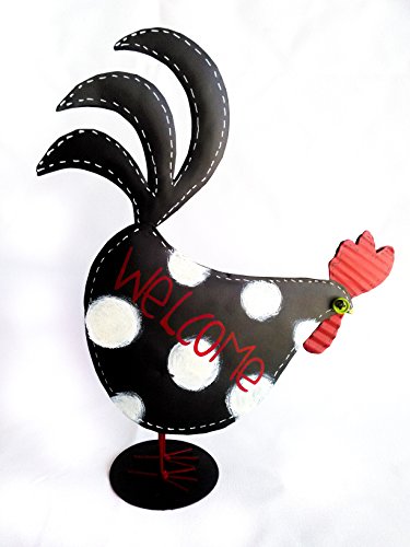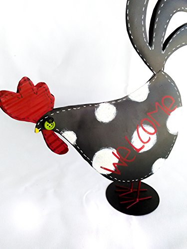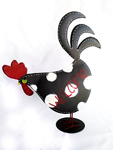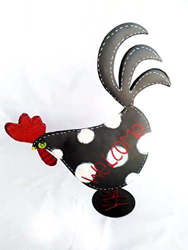 Metal Rooster Statue Welcome Sign Country Kitchen Decoration Vintage Style Chicken Figurine Garden Decor Black Red