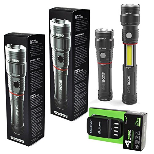 4 Pack Nebo 6434 Slyde King 330 Lumen USB rechargeable LED flashlight/Worklight, rechargeable Li-ion battery with EdisonBright 4 port USB charging station bundle