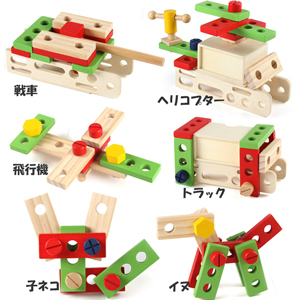 男の子のおもちゃといえばこれ。積み木のおもちゃ。危険な工具も、木製なら安全。