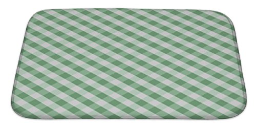 Gear New No Slip Microfiber Memory Foam Green Plaid Pattern Bath Rug Mat, 34" X 21"
