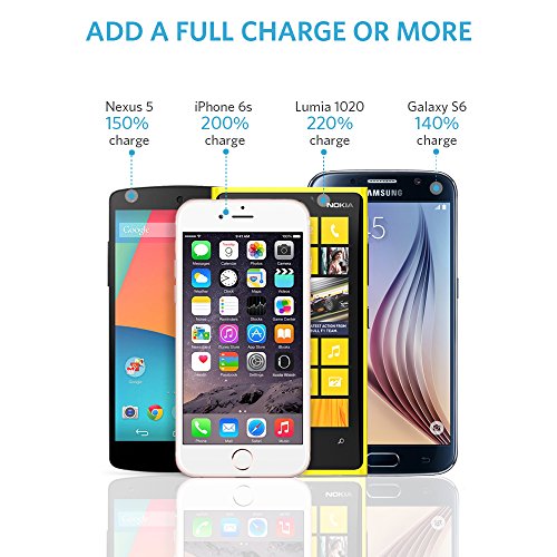 High Capacity: Add two charges to an iPhone 6 or 5s, at least one full charge to a 6 Plus, Galaxy S5, Note 4, Nexus 5 and other smartphones, or even an 80% charge to an iPad mini.