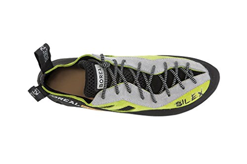 Studio : Boreal Publisher : Boreal Binding : Sports Product Description Womens Boreal Climbing Shoes: Work hard in these! Boreal Silex Womens is a women's specific comfortable all-day shoe, and is the ideal companion for longer routes. Silex has plenty of support to prevent your foot tiring on smaller holds, and the padded lining will keep your foot snug. Our sticky and durable FS Quattro rubber ensures long lasting performance. It features The Silex features a super-comfortable Slim Fit Last, designed to fit the contours of a lower volume foot. Full length lacing right to the toe allows for further volume tuning, and adds precision. A high-quality split leather upper is combined with the PU Air Net padded lining for superior comfort. The low tension IRS (Integrated Rand System) heel is a one-piece heel unit which securely holds the heel without any pressure points. An EVA anti-shock layer under the heel provides extra cushioning. Silex Womens is a shoe for the long-haul. For full days at the crag, multi pitch climbs or even extended training sessions at the wall, Silex is the ideal choice. Premium quality Split leather, PU Air Net lining for comfort and ventilation. PU Air Net for ventilation and comfort. Half length stiff midsole. Boreal FS-QUATTRO. Thickness. 4 - 4.6 mm depending on size. IRS padded heel. Slip-lasted. Round Toe. Designed for day long use indoors or outdoors. Perfect for long crag days, multi-pitch climbs and extended training sessions. 11402 0