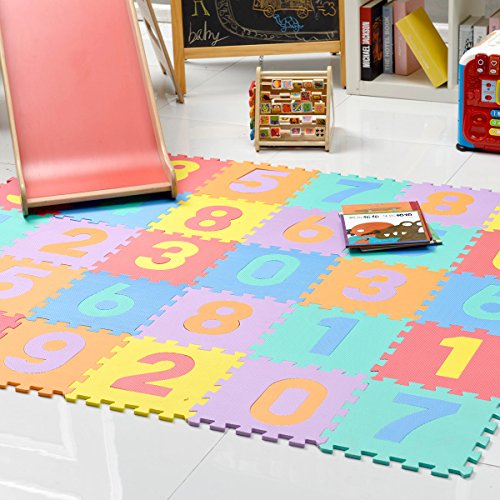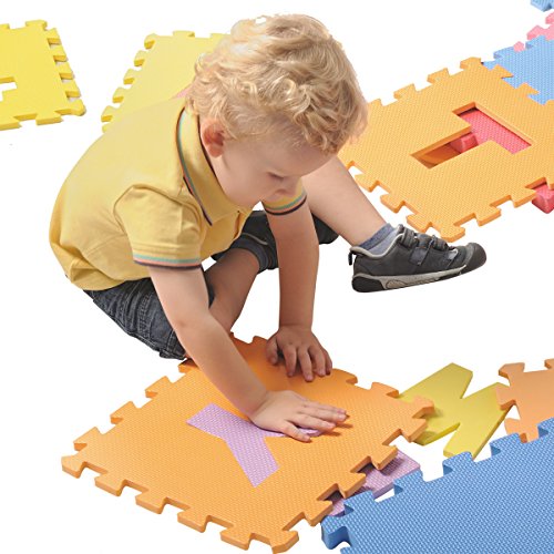 The Zoeshare puzzle play mat is a must have for kids of all ages. This colorful high density EVA foam mat is safe, soft and durable. It is Non-Toxic, Lead-free, BPA-free and Phthalates-free. The playmat meets or exceeds all United States regulated toy safety standards. This mat is ideal for the play-room, exercise-room, daycare schools. Interchangeable pieces allow kids to develop gross motor skills, hand-eye coordination, and visual sensory growth. Large, cushioned, and colorful puzzle pieces are very safe, not only for your children but they also protect your floors against damage. Toddlers will love taking apart and re-arranging these puzzle pieces for hours of fun.
