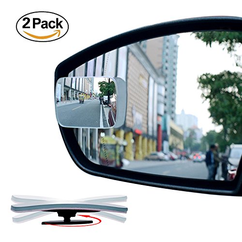 2 Pack Slim Square 360° Rotate + 20° Sway Adjustabe Blind Spot Mirror, Ampper HD Glass Convex Wide Angle Rear View Car SUV Universal Fit Stick On Lens B01DNT7MHI