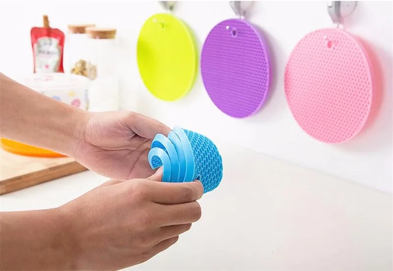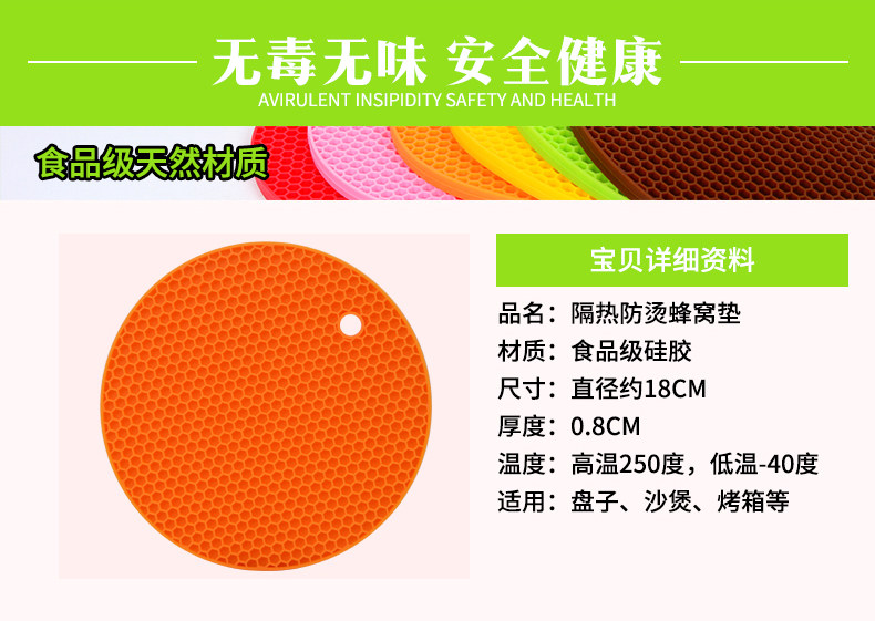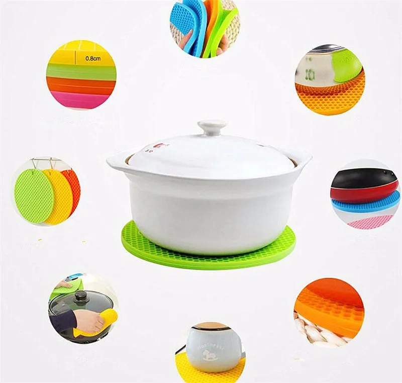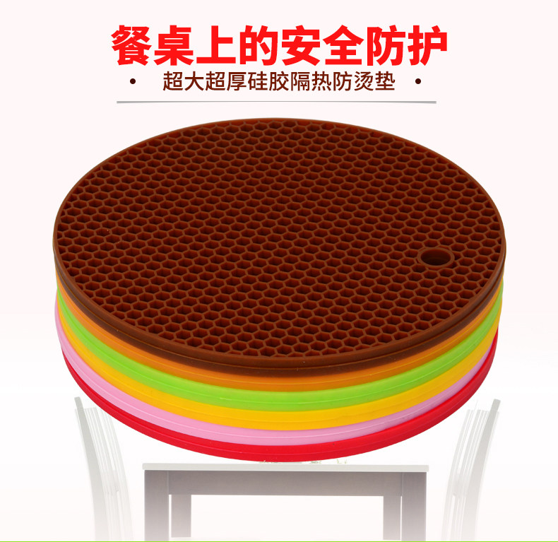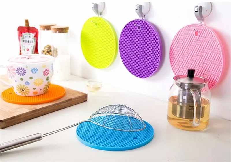 1 6pcs Honeycomb Shapeu0026nbsp;Table Mat Silicone Round Non-Slip Heat Resistant Mat Be Hung Durable Coaster Cushion Silicone Placemat