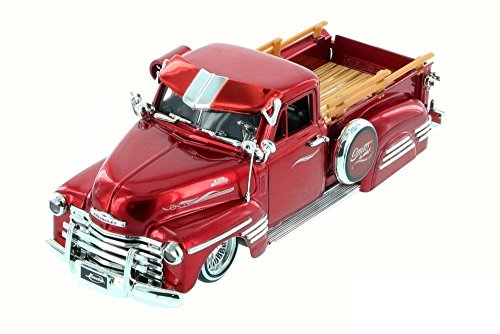 -. Binding : Toy -. Brand : Jada -. EAN : 0736983519986 -. Feature : DISPLAY BIG TIME KUSTOM Diecast Car (Without Retail Box) / By Jada Toys / Scale: 1:24 DieCast Metal With Some Plastic Parts / Rubber Tires & Detailed Interior -. IsAdultProduct : 0 -. Label : Jada Toys -. Manufacturer : Jada Toys -. ProductGroup : Toy -. ProductTypeName : TOYS_AND_GAMES -. Publisher : Jada Toys -. Studio : Jada Toys -. Title : New 1:24 DISPLAY - Big Time Kustoms - RED 1951 CHEVROLET PICKUP Diecast Model Car By Jada Toys -. UPC : 736983519986