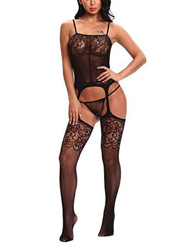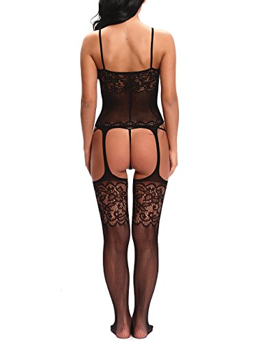 -. Title : Vextronic Lingerie Bodystocking Stretch Sling Crotchless Elastic Tights With Sexy Floral and Fishnet No Crotch For Women