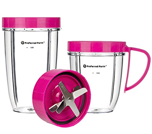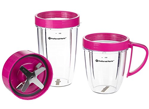 Preferred Parts, NUTRiBULLET Cups & Blade Replacement Parts Set for NutriBullet (5 Piece Set) | Premium NutriBullet Accessories (Pink)